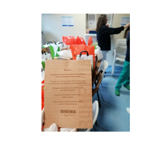 A cerveja Bohemia levou 1.500 menus especiais na Páscoa de 2020 aos profissionais de saúde que estiveram na linha da frente no combate ao coronavírus, um agradecimento àqueles têm sido incansáveis nesta luta e que nunca baixaram os braços.
